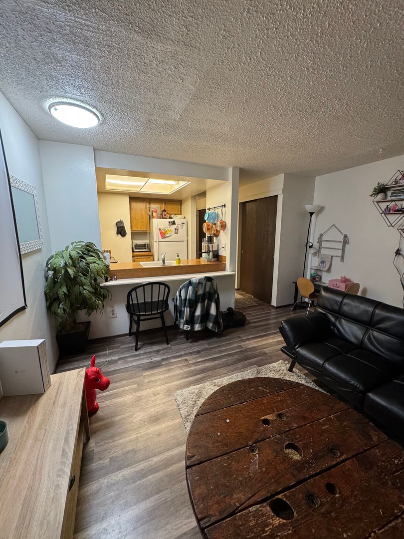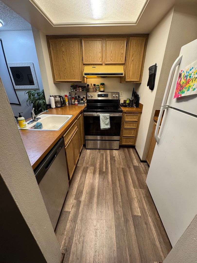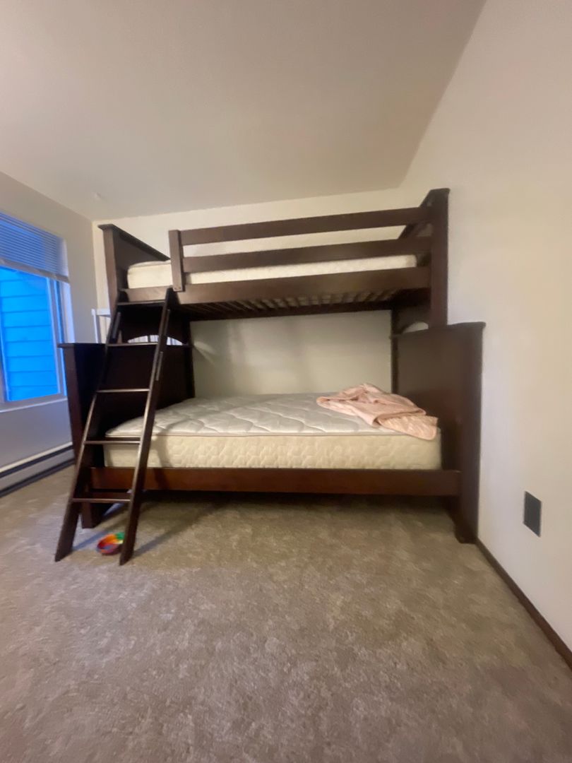 Open and bright 939 square foot town house with 2 bedrooms and 1.5 bathroom. You enter through this unit to on the main floor with a cute nook and closet, then the kitchen opens into living room which is spacious and has a wood burning fireplace. The main floor has a half bath. Upstairs, has two good sized bedrooms and a full bath with w/d hoop-ups. There is also a one car detached garage. Unit was painted 6 months ago, has a new stove, dishwasher, washer dryer and new flooring, blinds and trim!