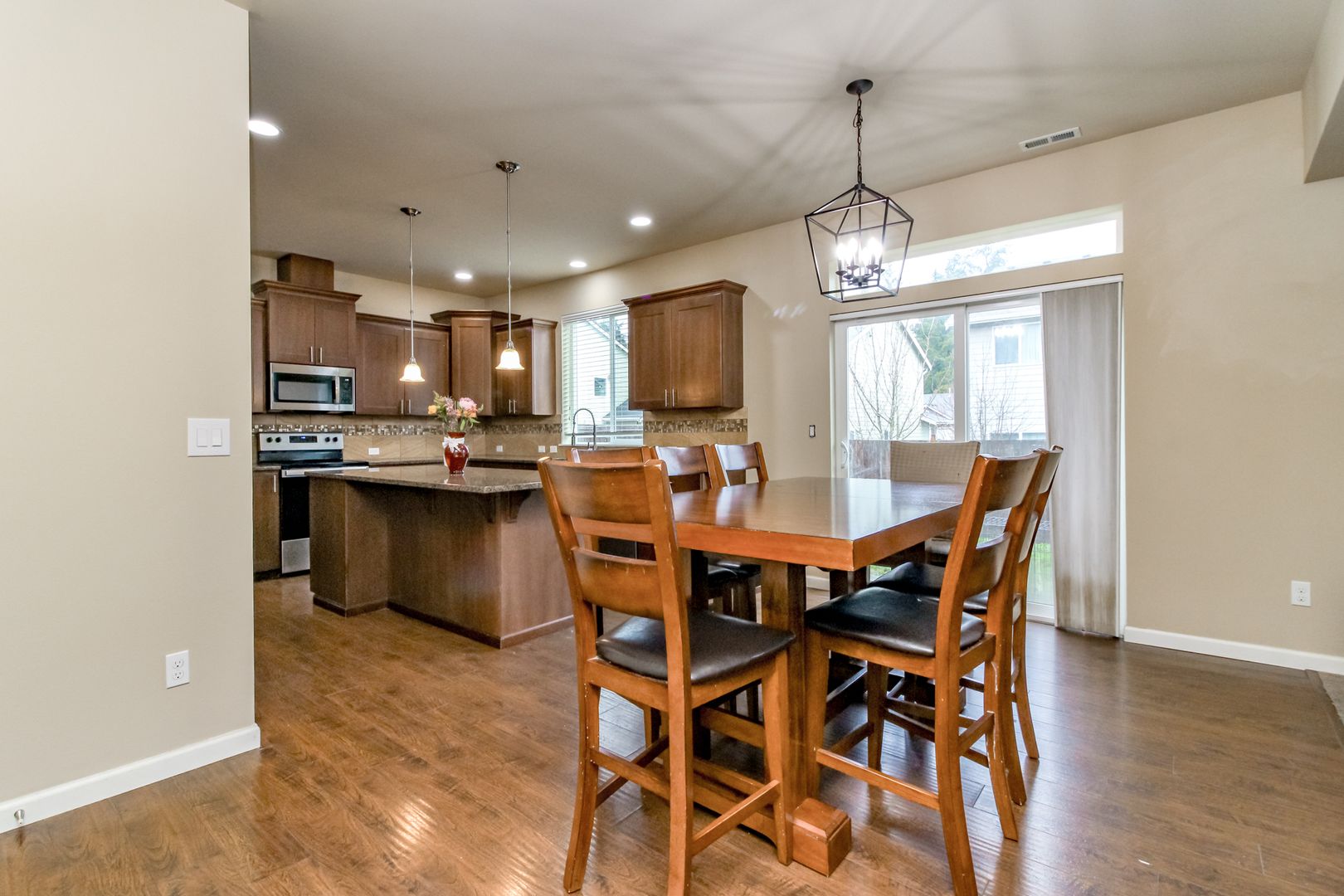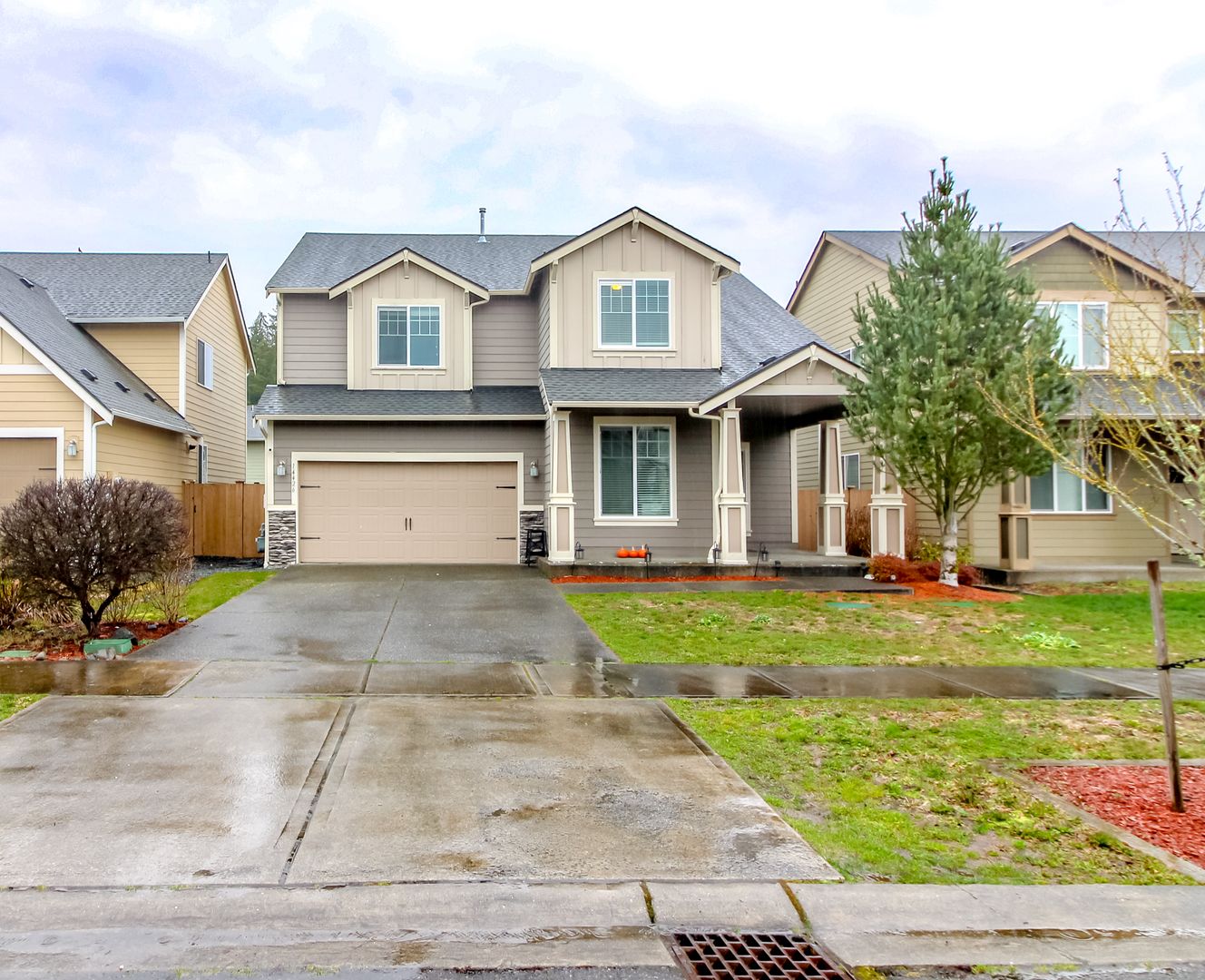 With 4 bedrooms and a bonus room that could be converted into a 5th bedroom boasting 2,500+ sf of meticulously designed living space, this home offers the perfect blend of style and functionality. The main level has a spacious great room that seamlessly integrates open space concept living area. Updated kitchen with granite countertops, full-height tile backsplash and walk-in pantry. Guest bathroom completes the amenities on the first floor. The upstairs offers a primary suite with 5-piece ensuite bathroom and expansive walk-in closet. Three additional bedrooms, a bathroom, and laundry room round out the features of the upper floor. There is a fully fenced yard with a sprinkler system, a heat pump, and the security system stays. Conveniently located close to I-5, Yelm Hwy, JBLM, local schools, recreational parks and more.