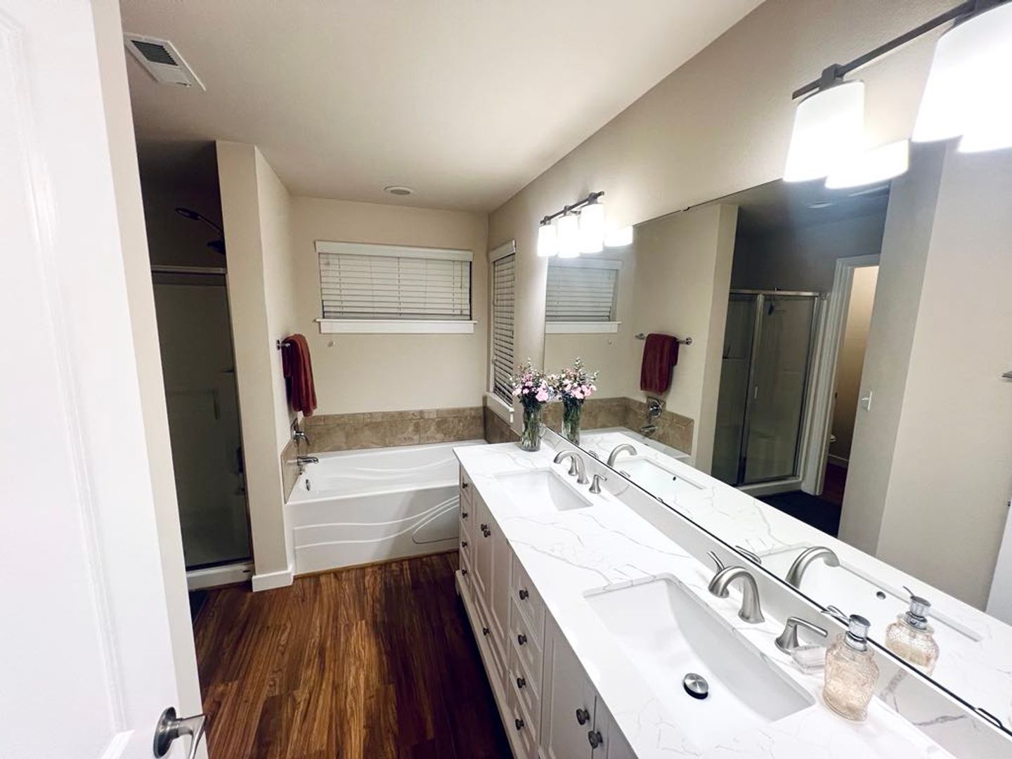 Welcome to the highly desirable Woodbury Crossing in West Olympia! This meticulously maintained home exemplifies exceptional pride of ownership. Step inside to experience a bright spacious layout, featuring three bedrooms and two and a half bathrooms.