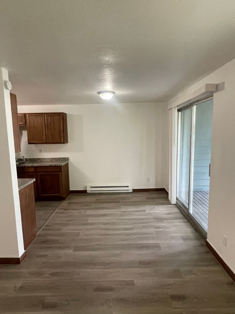 Features include a living room with fireplace, new LVP floors. Brand new kitchen, with range, sink and refrigerator. Two bedrooms with new windows & blinds, full bath with new bath tub and tub surround, vanity and toilet. Laundry has washer/dryer hook-ups. Lovely private deck nestled in the trees, one car garage and parking for one additional vehicle. Exterior was done as well as new windows! First unit available of the 4! This home also has access to use the pool at the AERO complex, photo included below.
